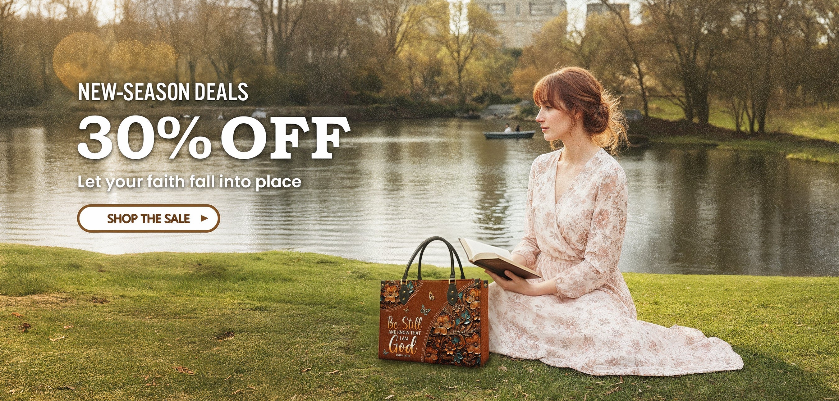 A reminder of His love, grace, and guidance. These beautifully crafted handbags feature timeless scripture, bringing peace and faith into your everyday journey.