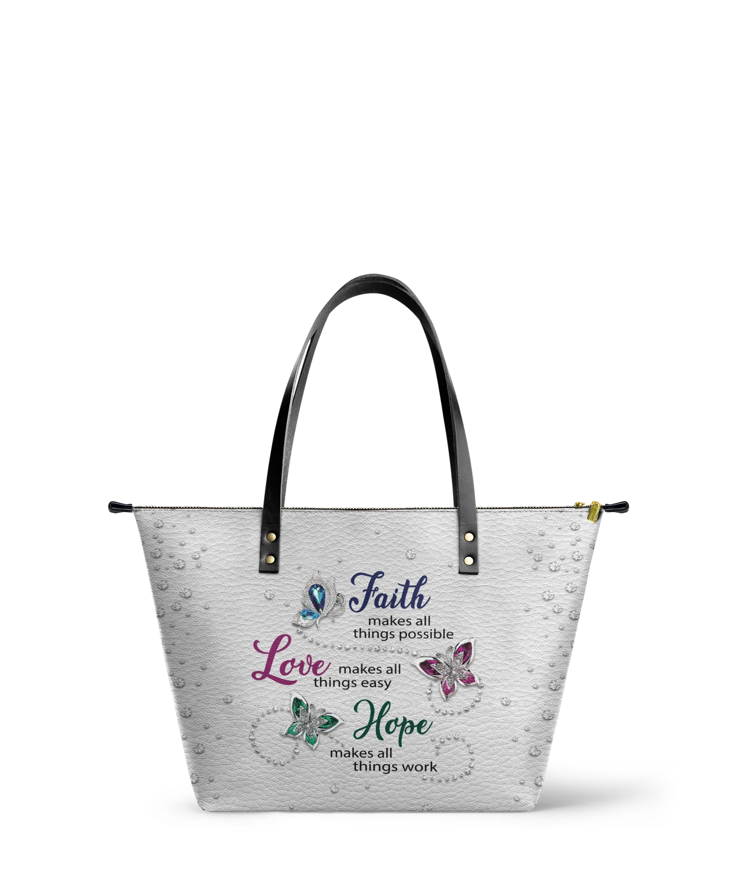 A reminder of His love, grace, and guidance. These beautifully crafted handbags feature timeless scripture, bringing peace and faith into your everyday journey.