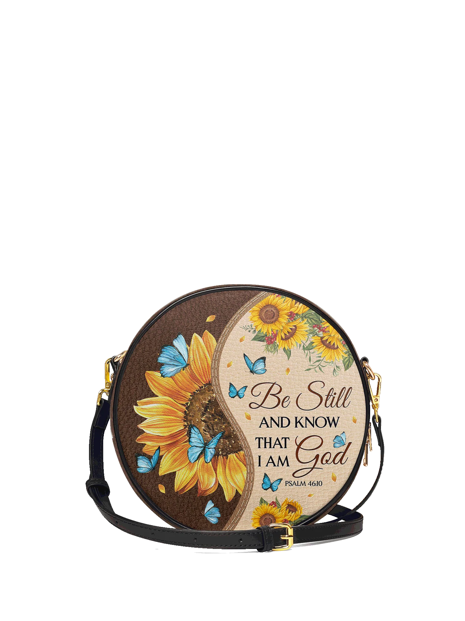 "Presence" - Psalm 46:10 Circle Crossbody Bag