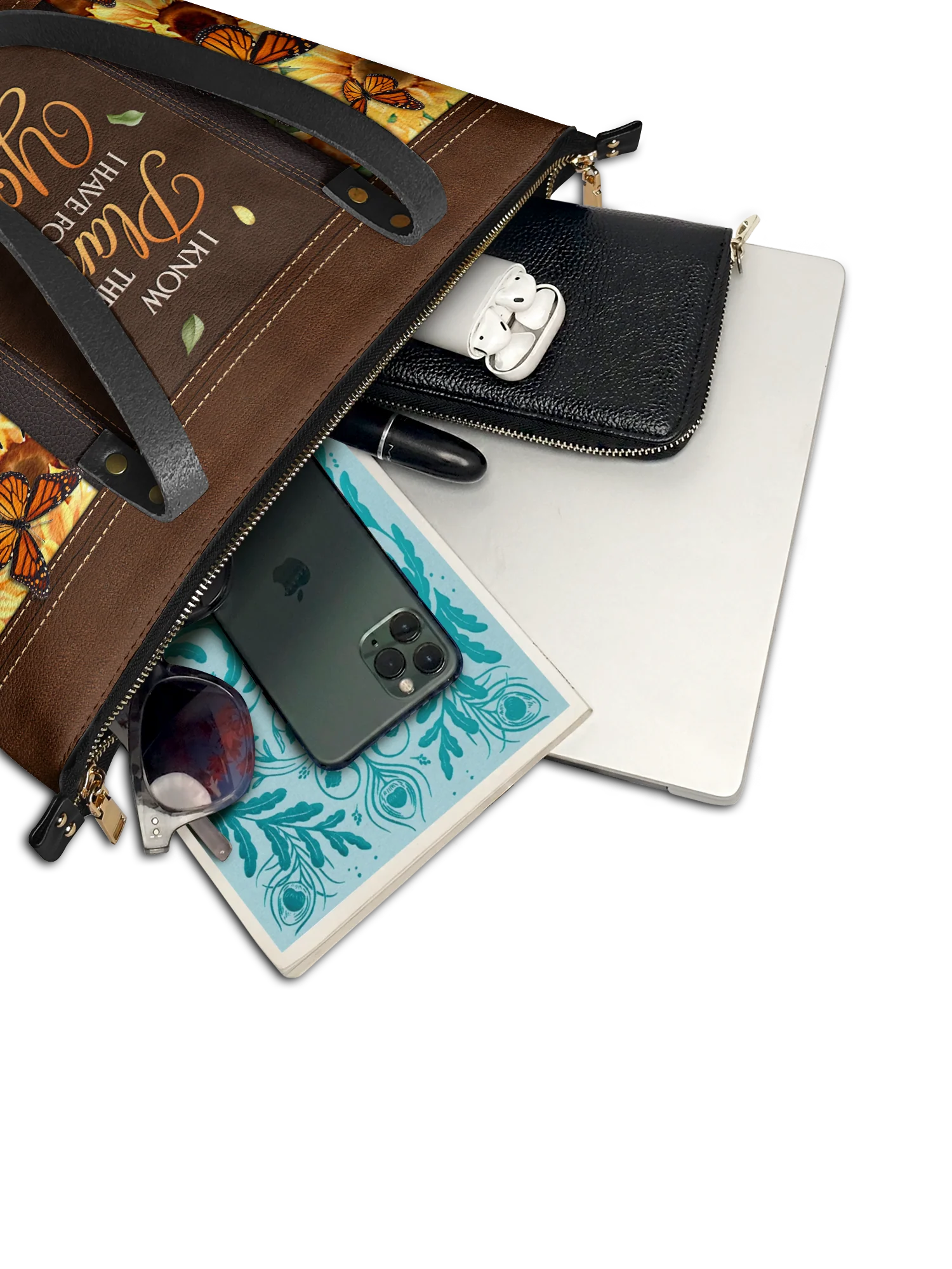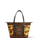 This tote bag is spacious and practical, easily fitting 2 large print Bibles, a 13" laptop, books, and daily must-haves.
