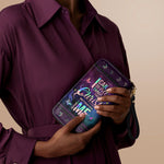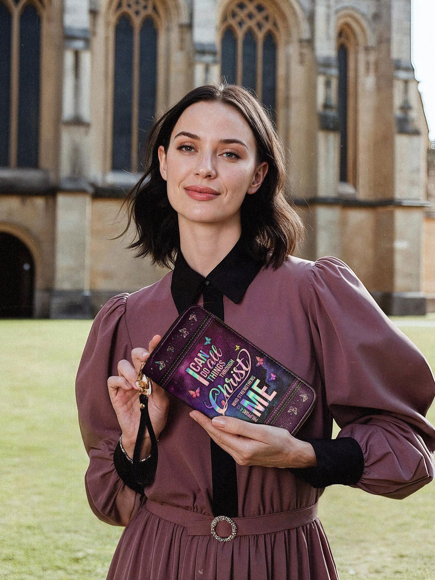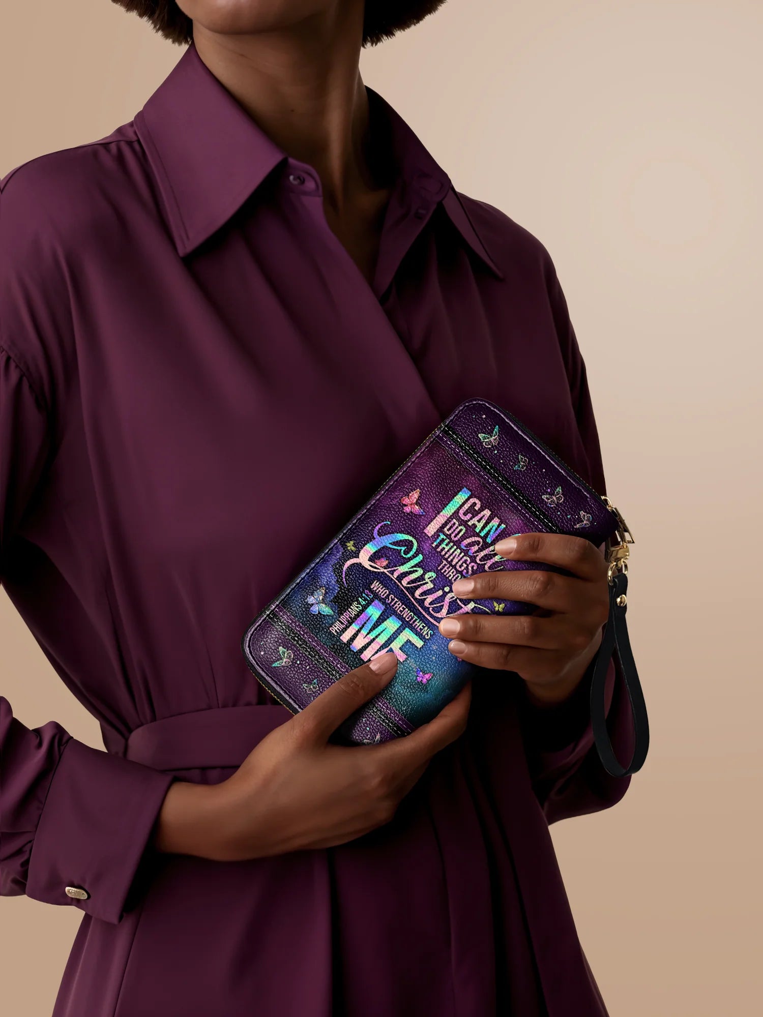 The secure zipper closure keeps everything safe, while the detachable wrist strap offers effortless carrying—perfect for work, travel, or a chic night out.