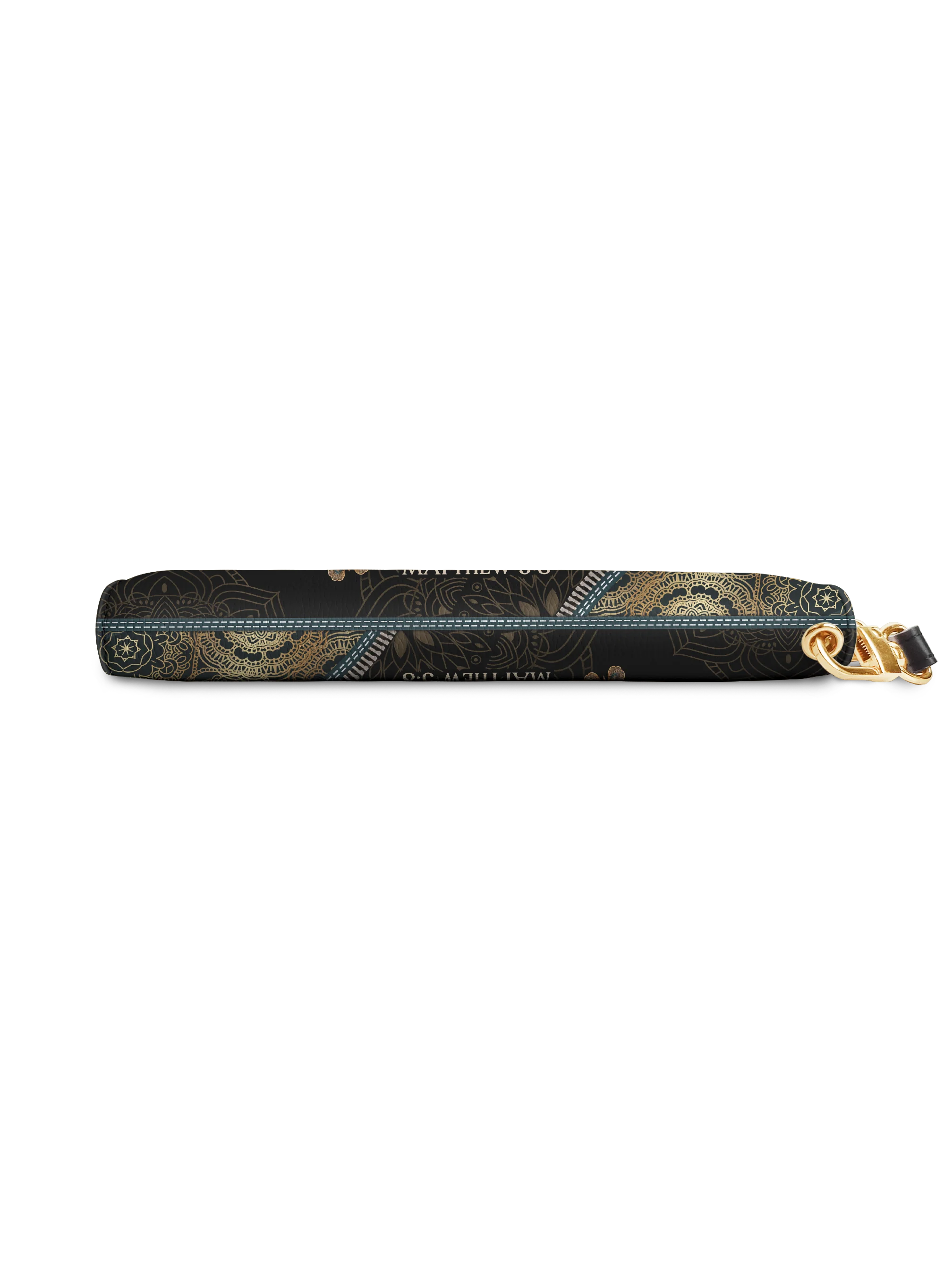This wallet is spacious and stylish, holding beauty essentials, cash, cards, and a phone with ease.