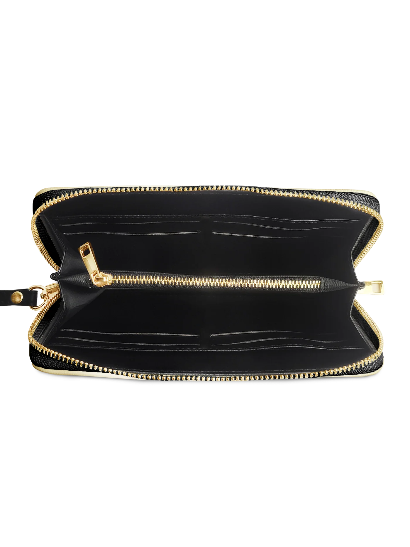 The secure zipper closure keeps everything safe, while the detachable wrist strap offers effortless carrying—perfect for work, travel, or a chic night out.