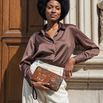The secure zipper closure keeps everything safe, while the detachable wrist strap offers effortless carrying—perfect for work, travel, or a chic night out.