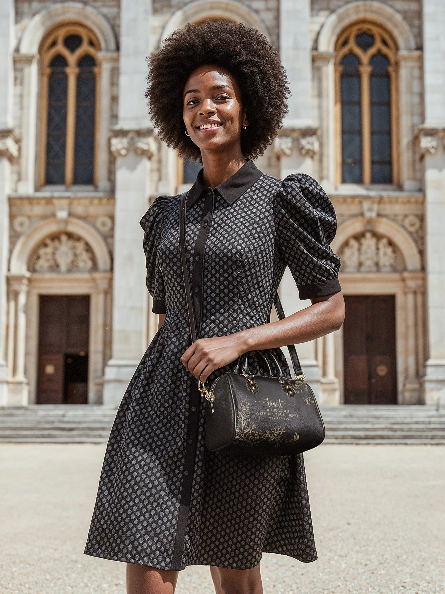 This handbag is spacious yet stylish, fitting up to 3 Bibles, a 14" laptop, books, wallet, and more.