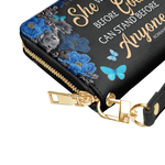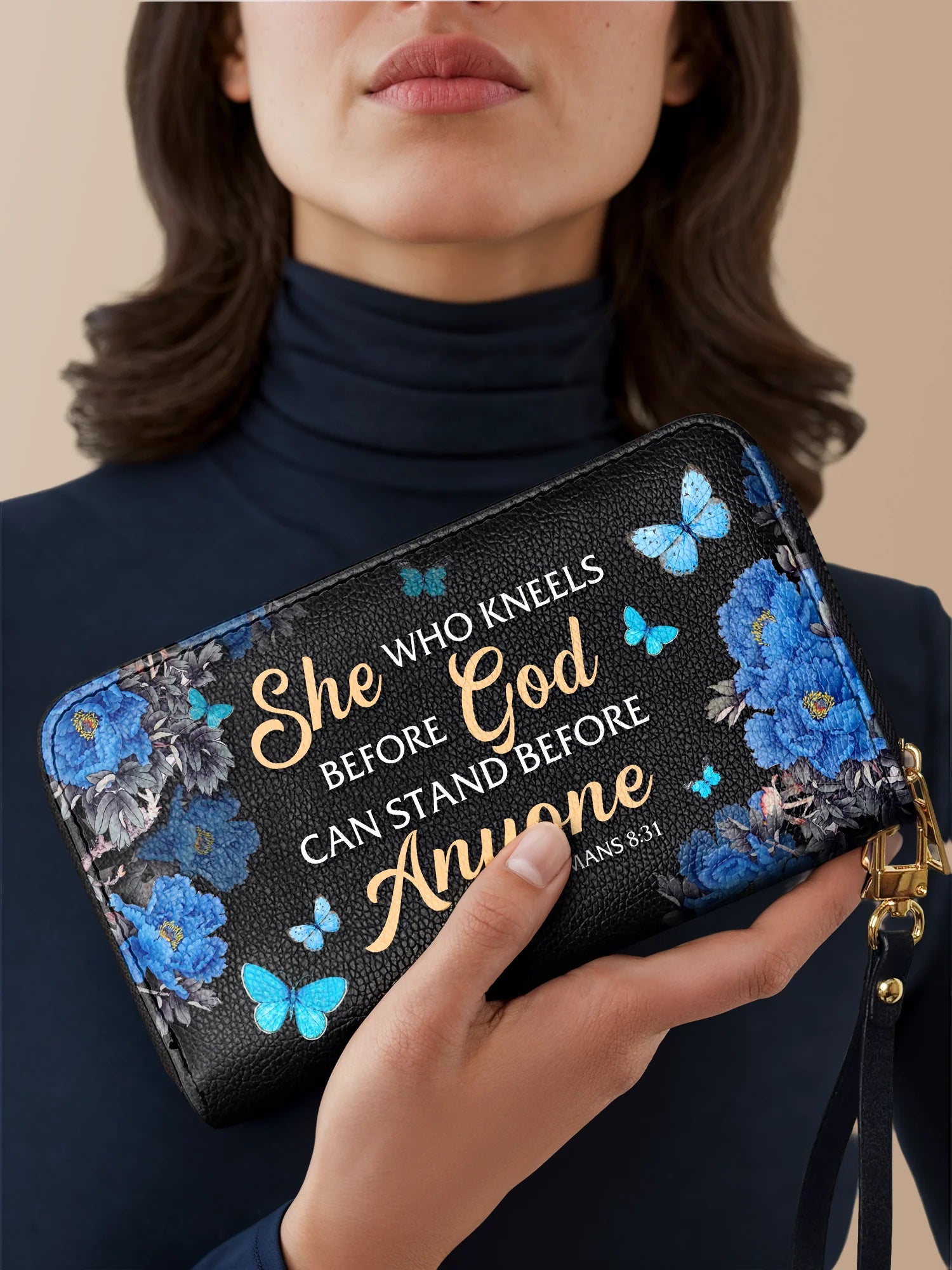 The secure zipper closure keeps everything safe, while the detachable wrist strap offers effortless carrying—perfect for work, travel, or a chic night out.