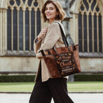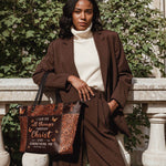 This tote bag is spacious and practical, easily fitting 2 large print Bibles, a 13" laptop, books, and daily must-haves.