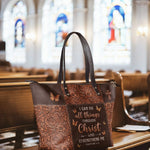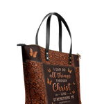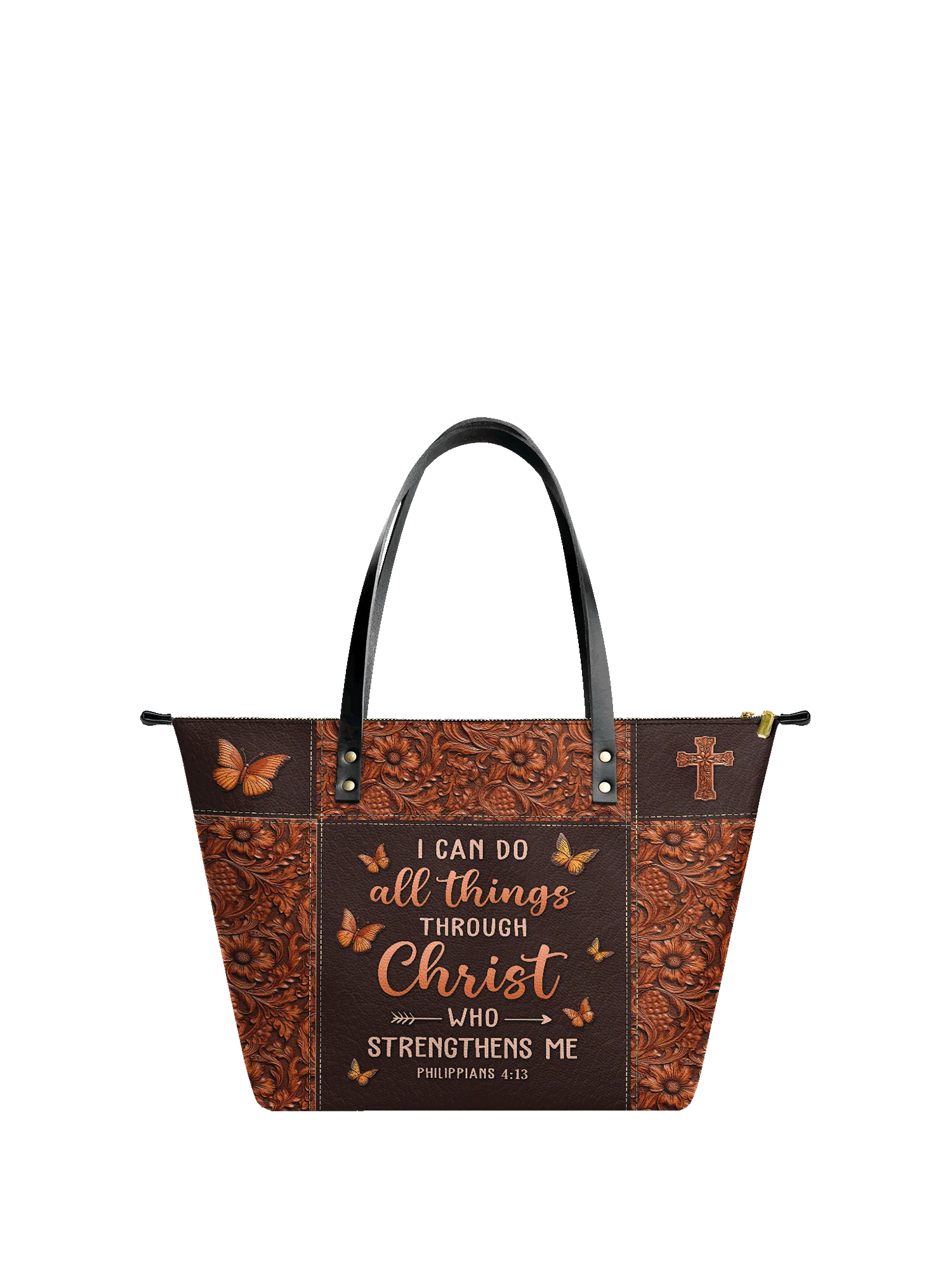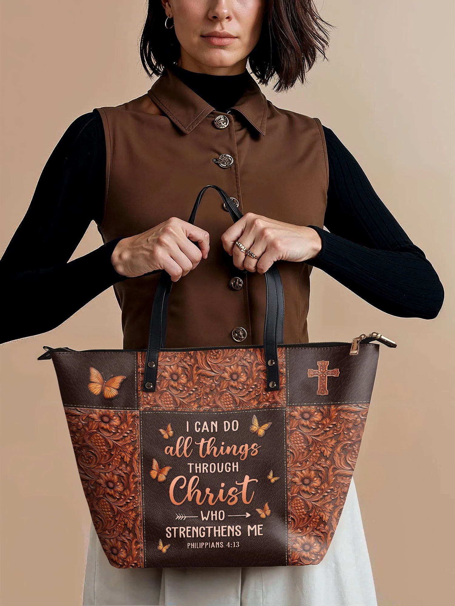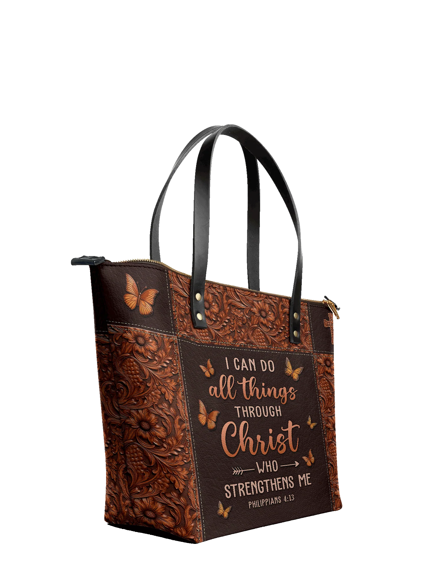 "Believe" - Philippians 4:13 Leather Tote Bag