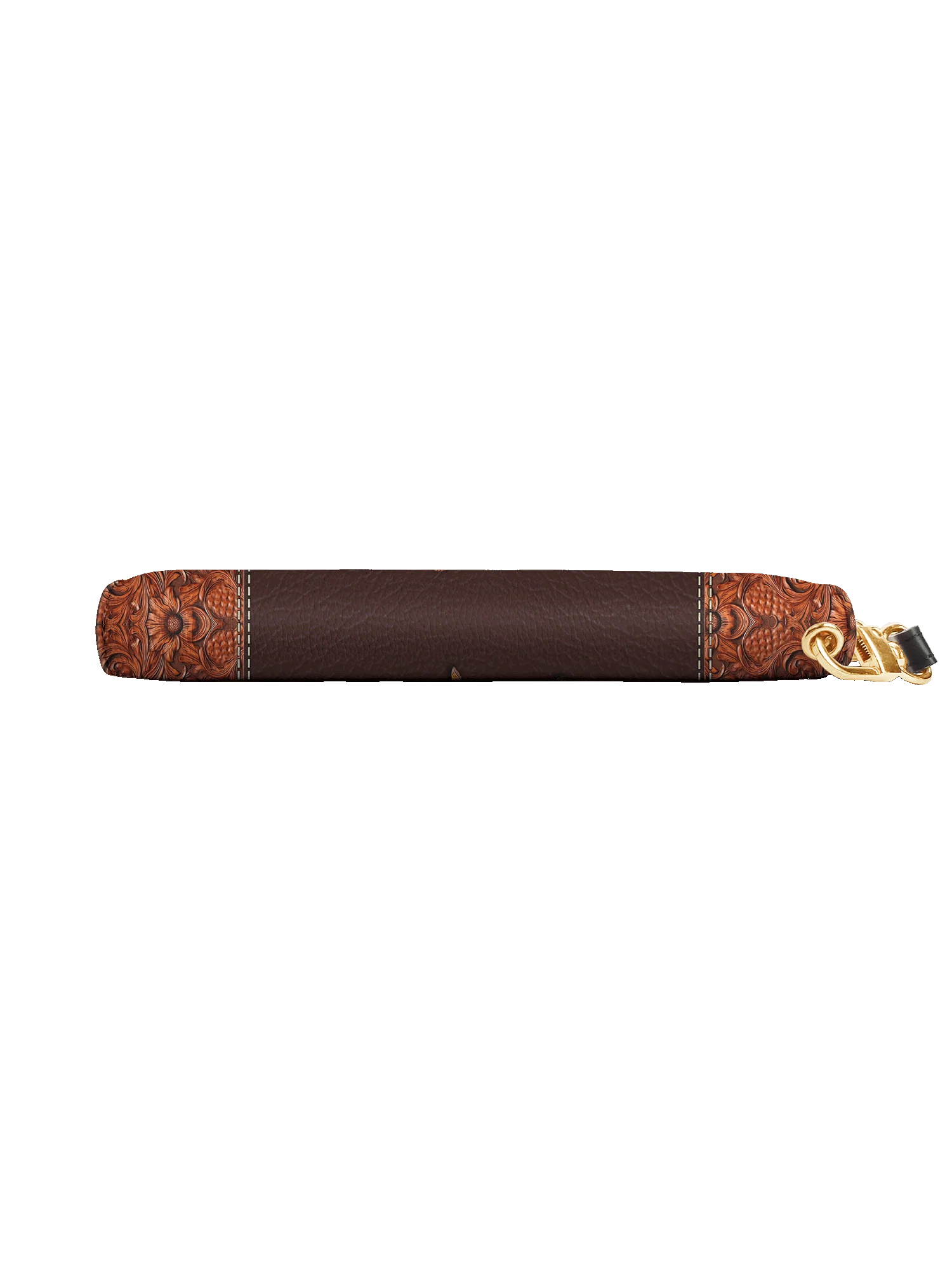 This wallet is spacious and stylish, holding beauty essentials, cash, cards, and a phone with ease.
