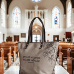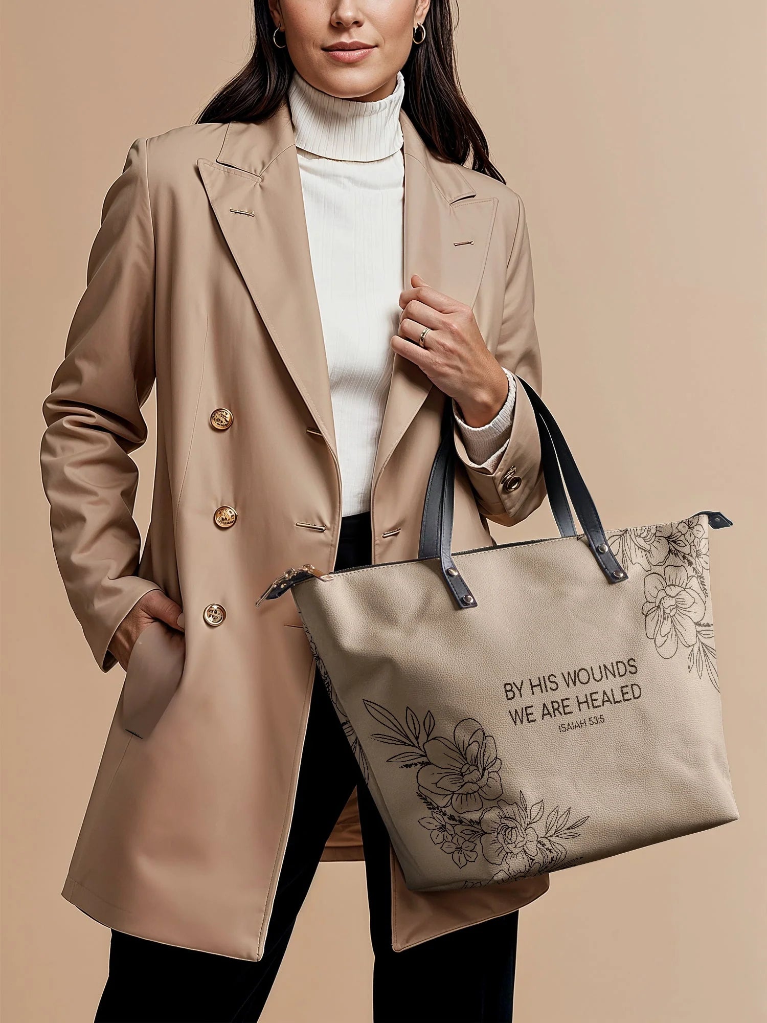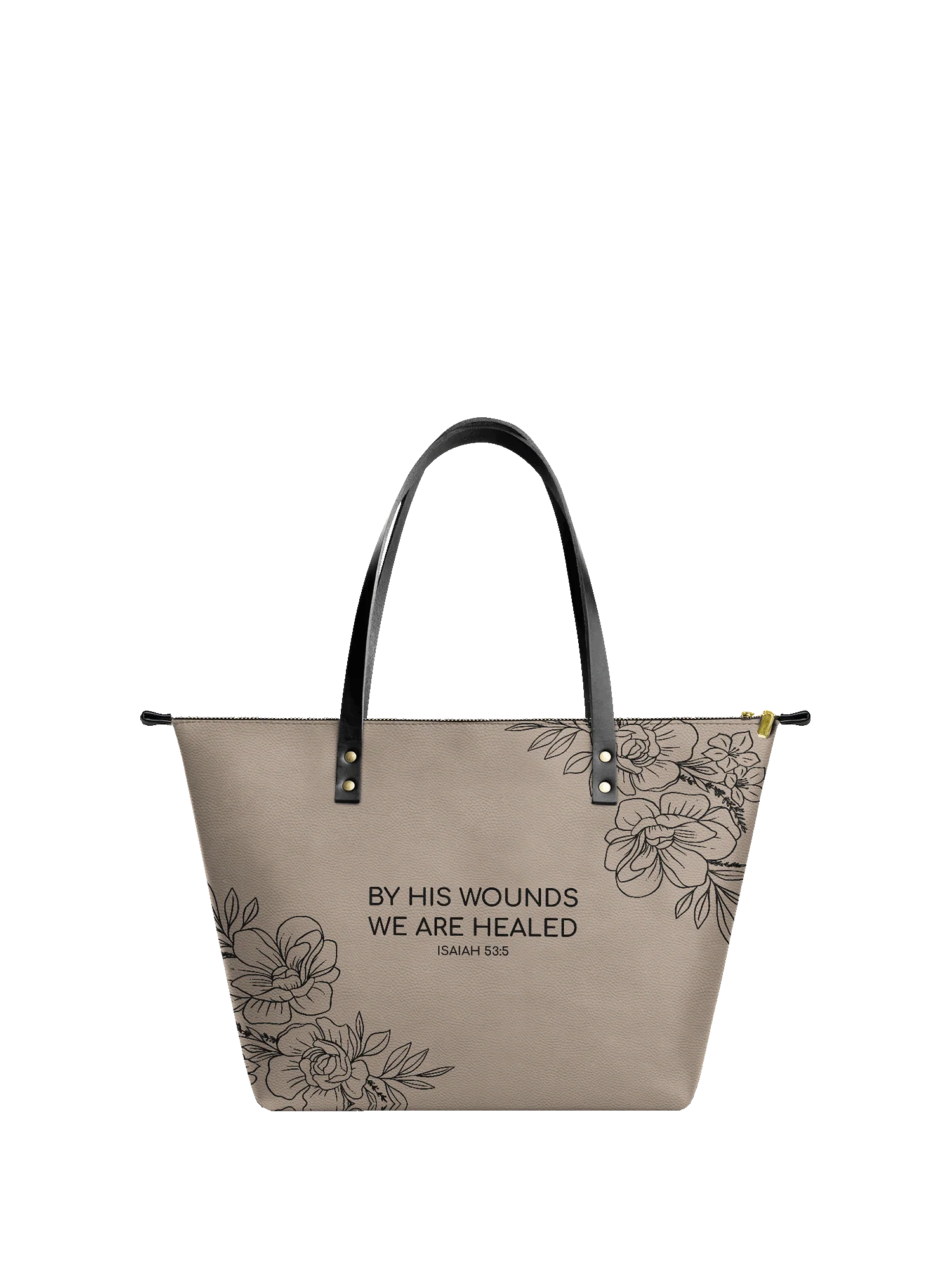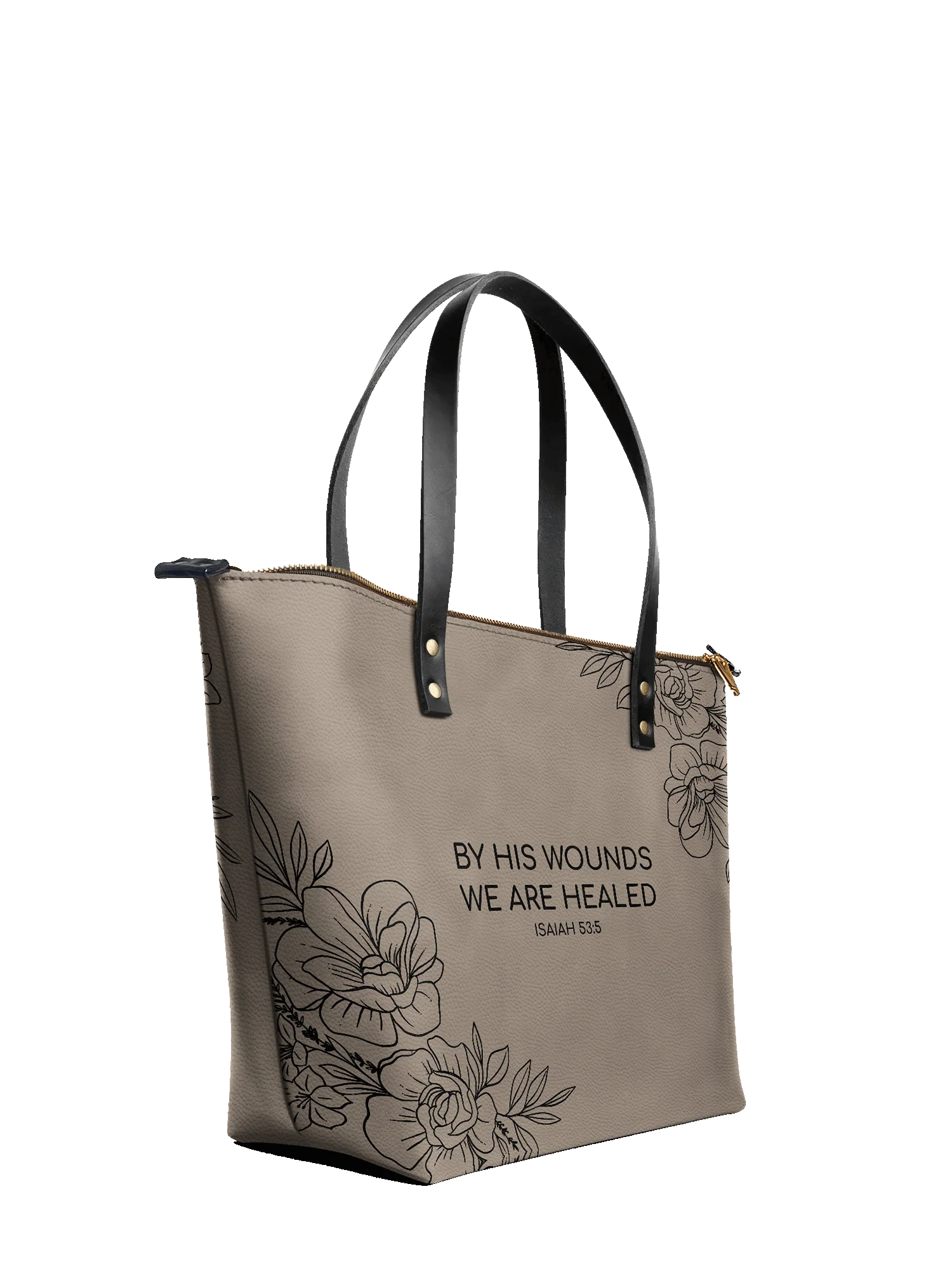 "Complete" - Isaiah 53:5 Leather Tote Bag