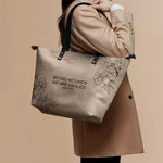 This tote bag is spacious and practical, easily fitting 2 large print Bibles, a 13" laptop, books, and daily must-haves.