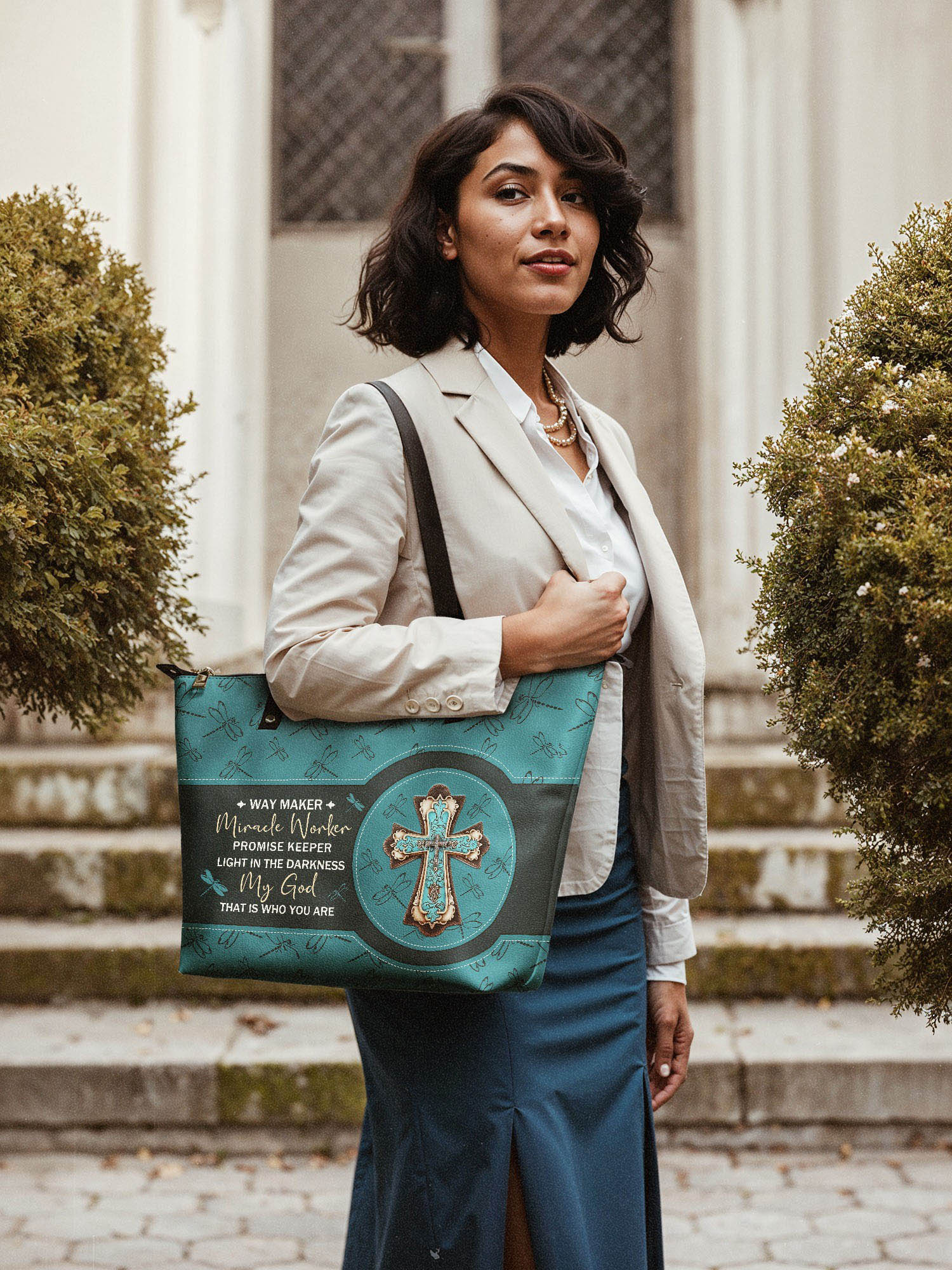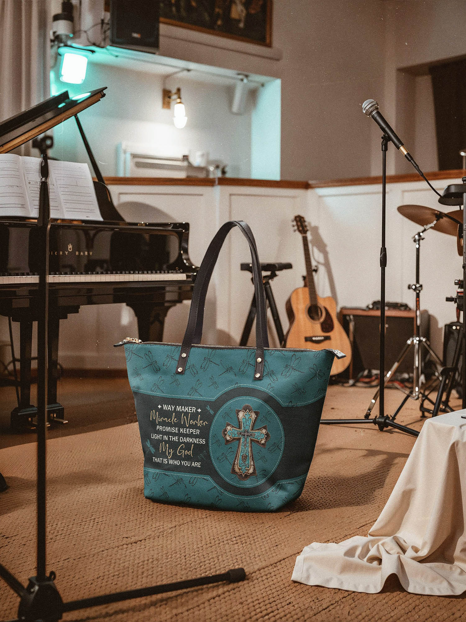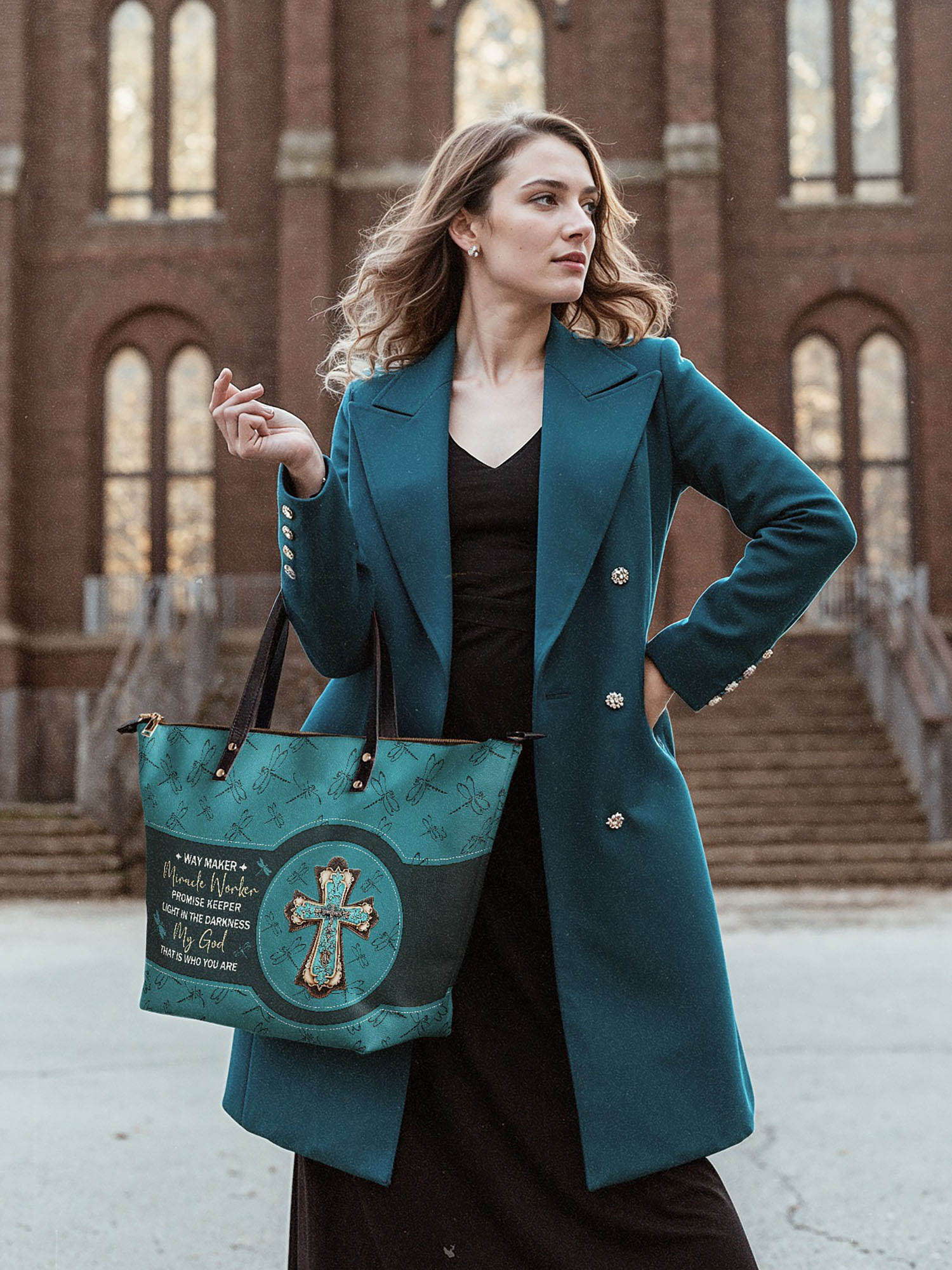 This tote bag is spacious and practical, easily fitting 2 large print Bibles, a 13" laptop, books, and daily must-haves.