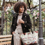 This tote bag is spacious and practical, easily fitting 2 large print Bibles, a 13" laptop, books, and daily must-haves.