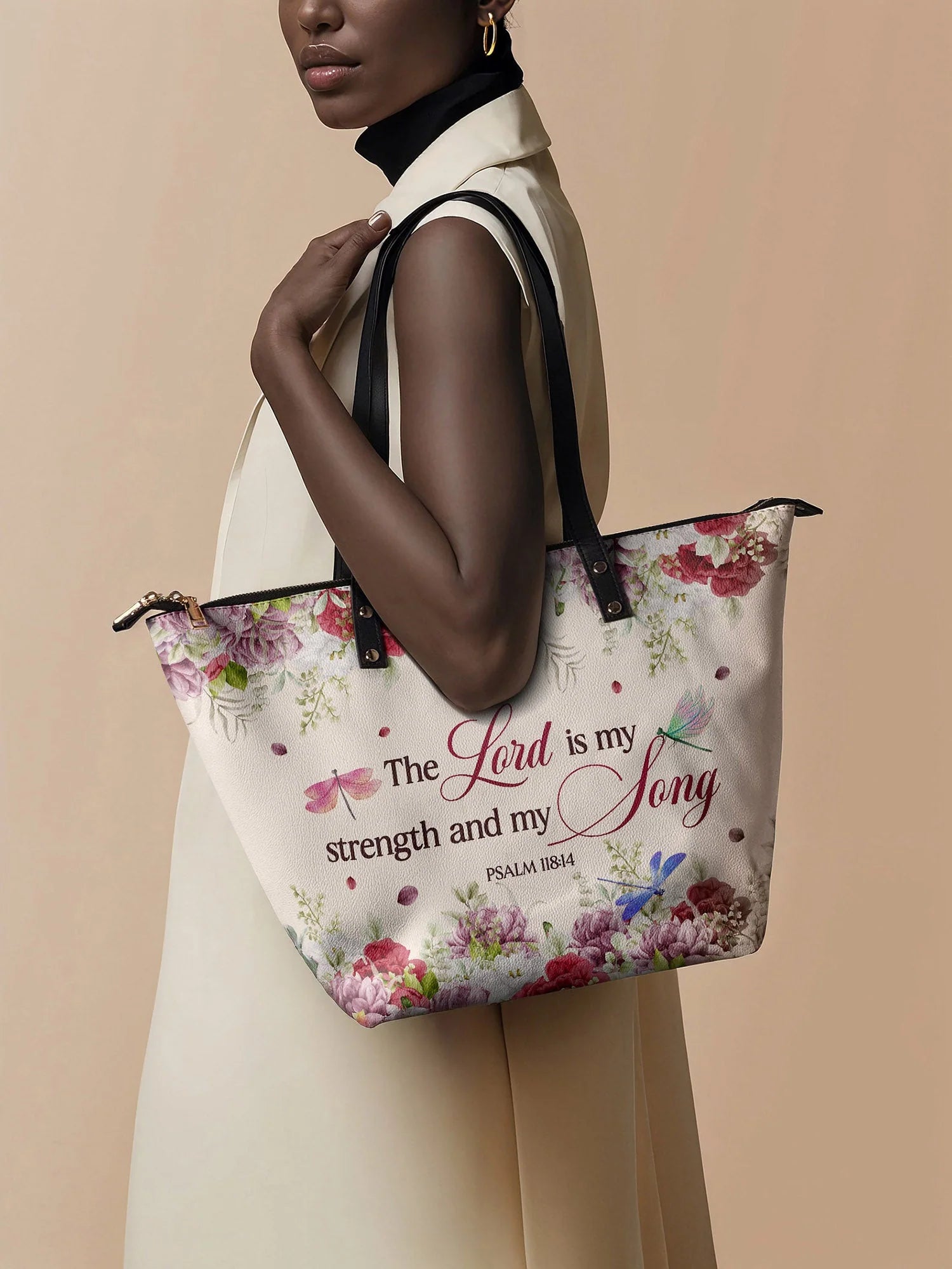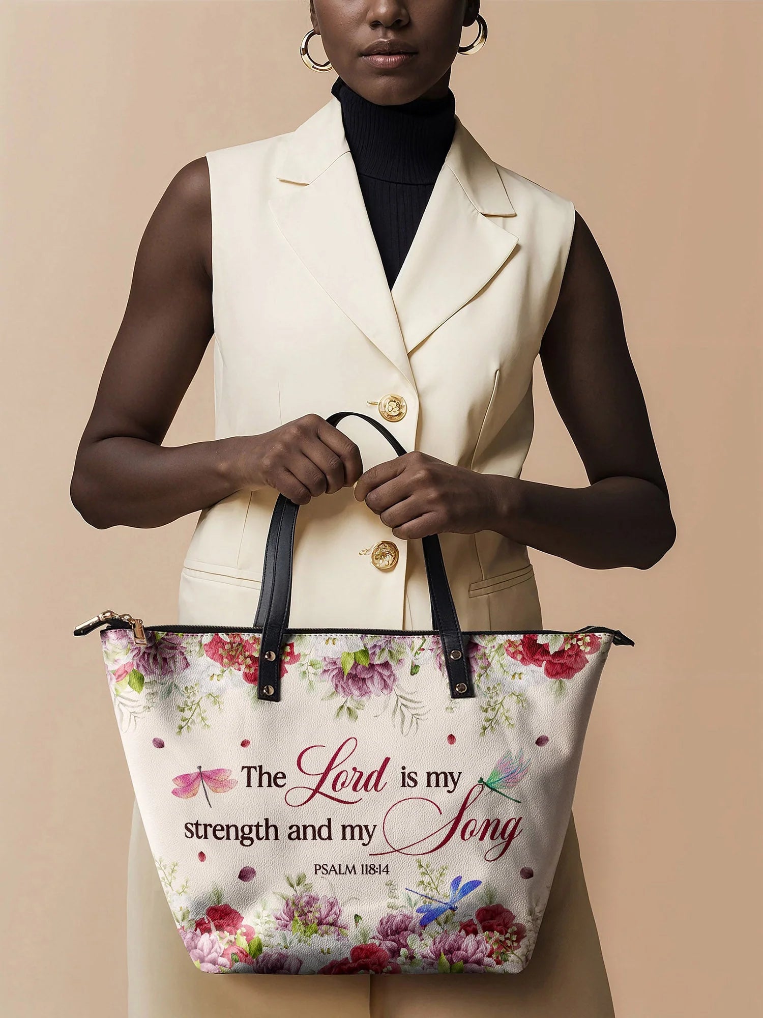 "Melody" - Psalm 118:14 Leather Tote Bag