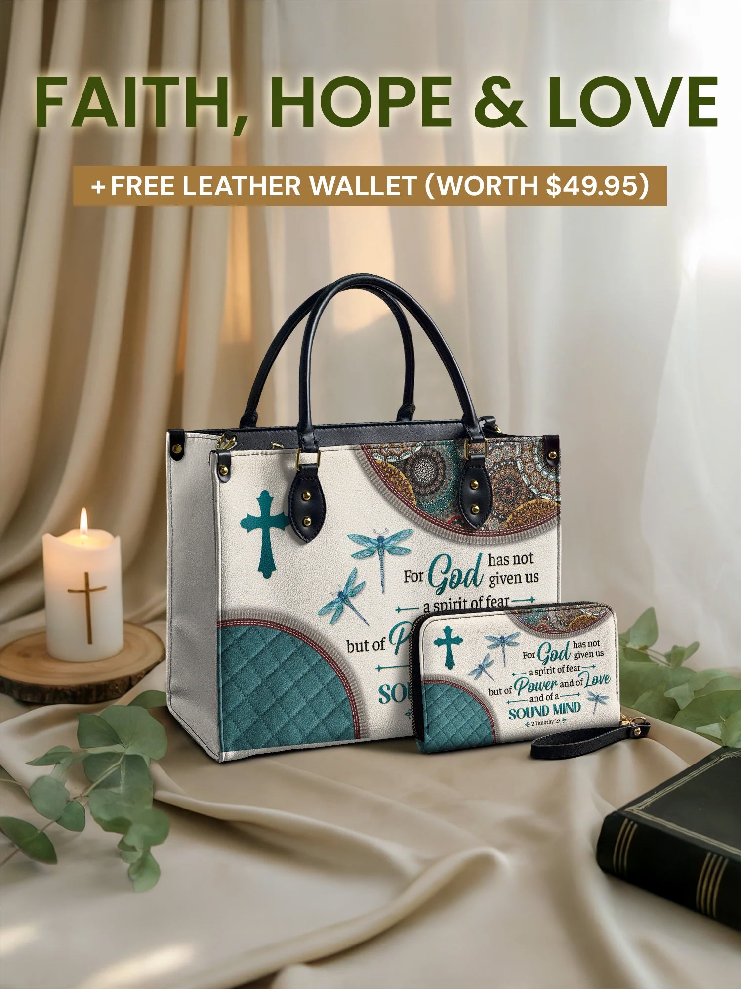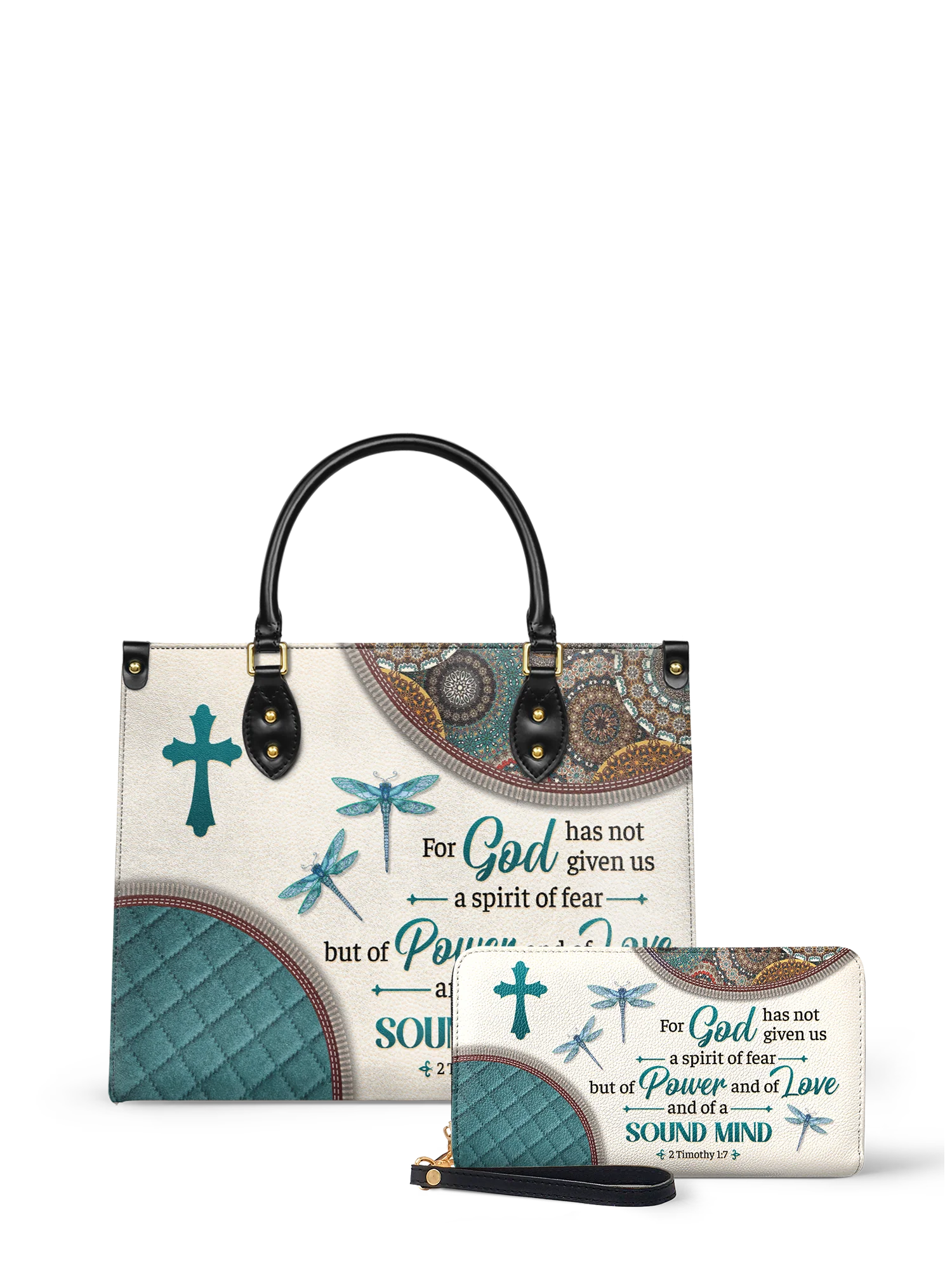 Featuring 2 Timothy 1:7, it reminds you that God has given you a spirit of power, love, and a sound mind. The graceful dragonflies symbolize transformation and faith, while intricate patterns add a touch of elegance. Designed for women who walk boldly in His truth, this handbag is a timeless statement of faith and confidence.