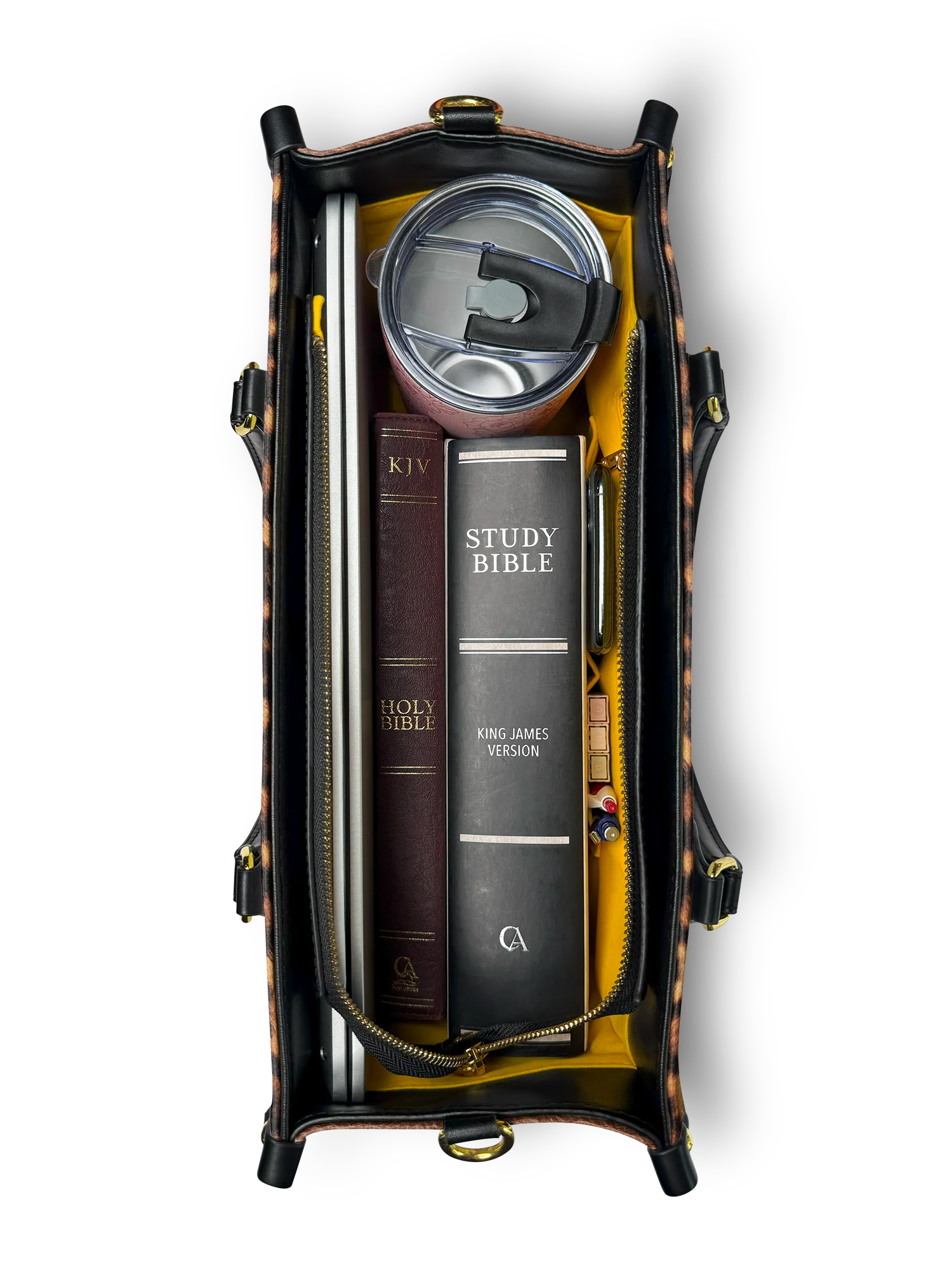 With a secure zipper closure and comfortable handles, it’s perfect for church, Bible study, work, or everyday use, keeping essentials organized and protected.