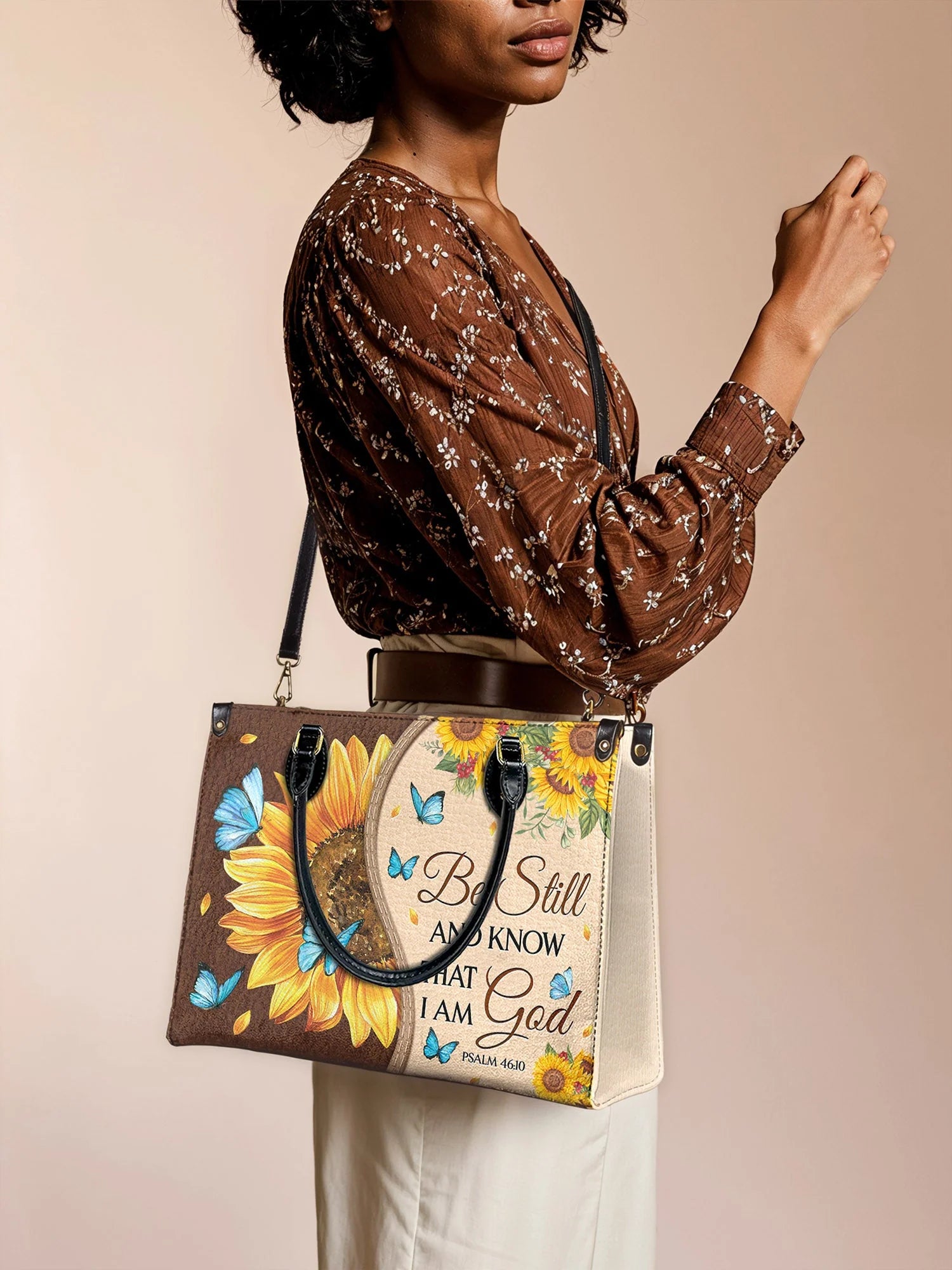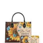 Embrace peace and trust in God’s plan with this beautifully designed leather handbag.