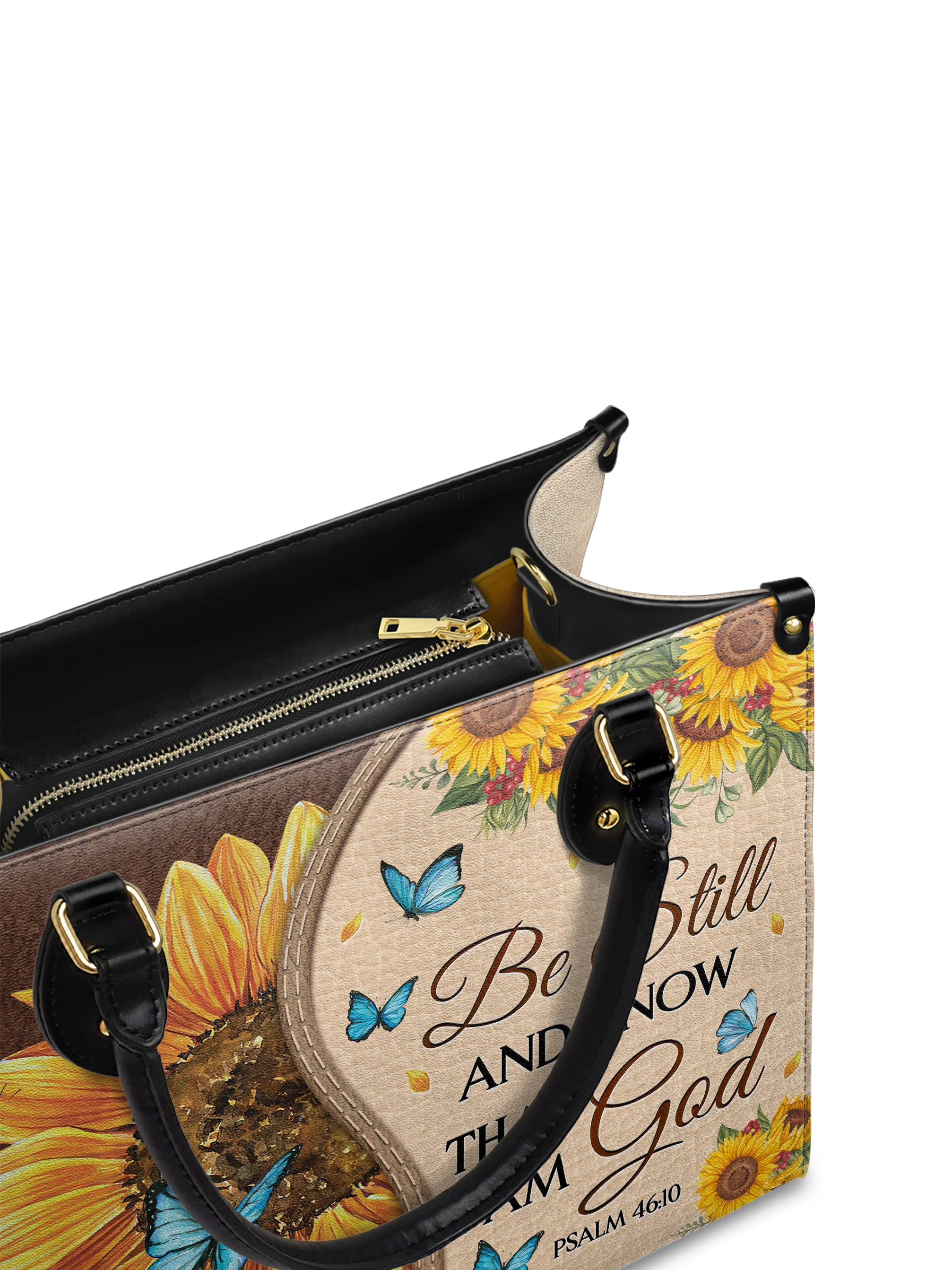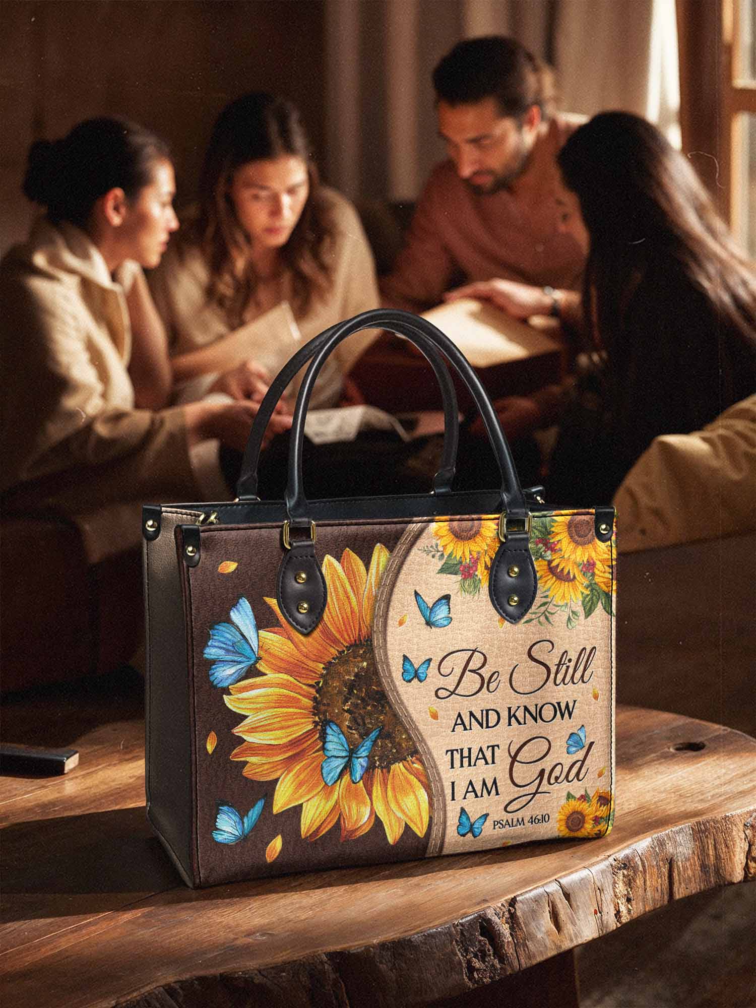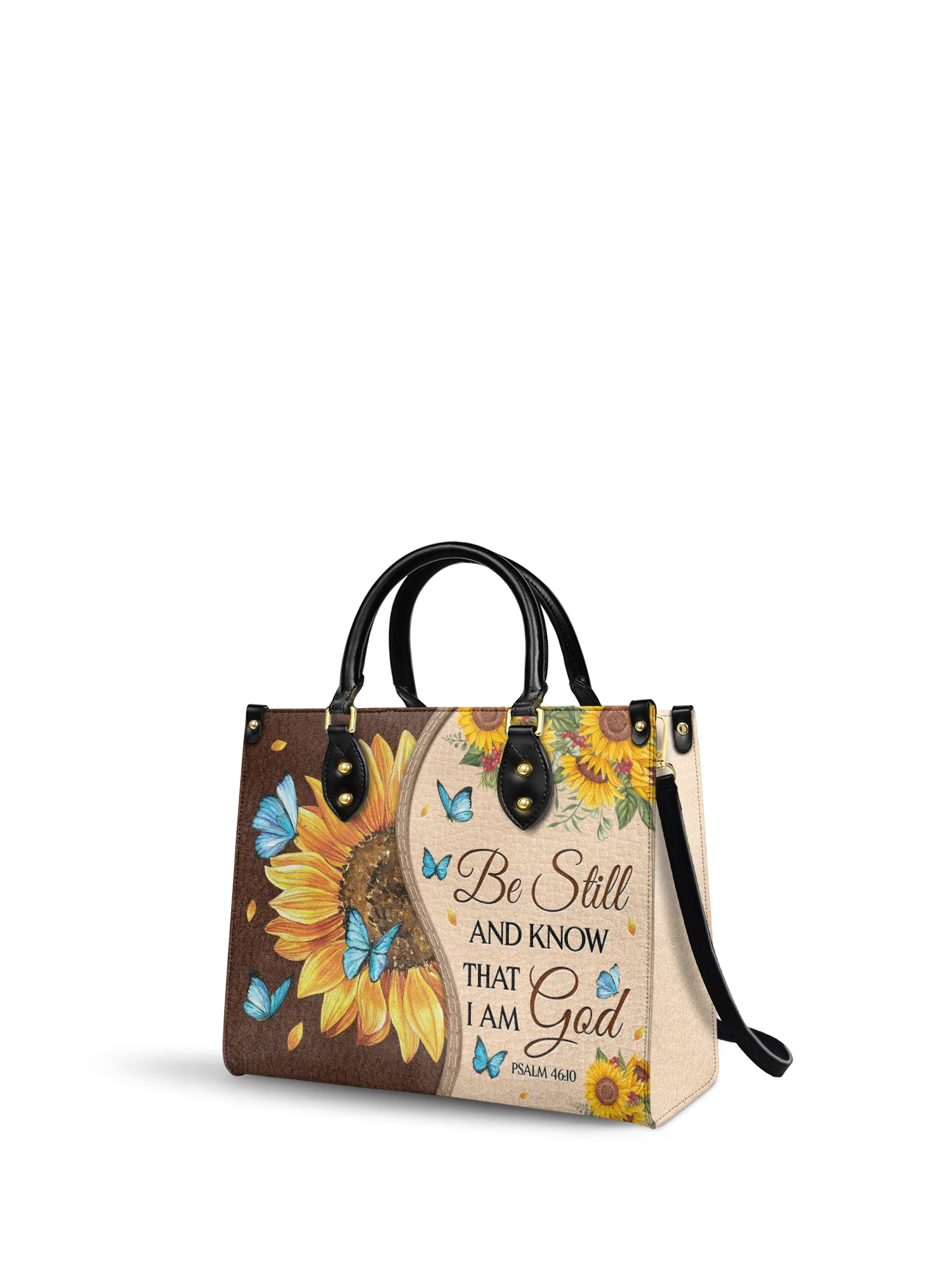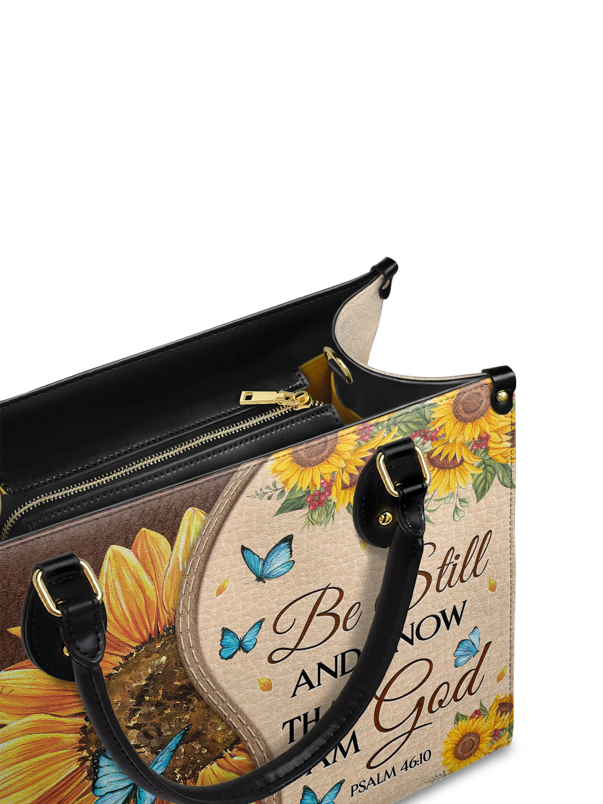 Embrace peace and trust in God’s plan with this beautifully designed leather handbag.