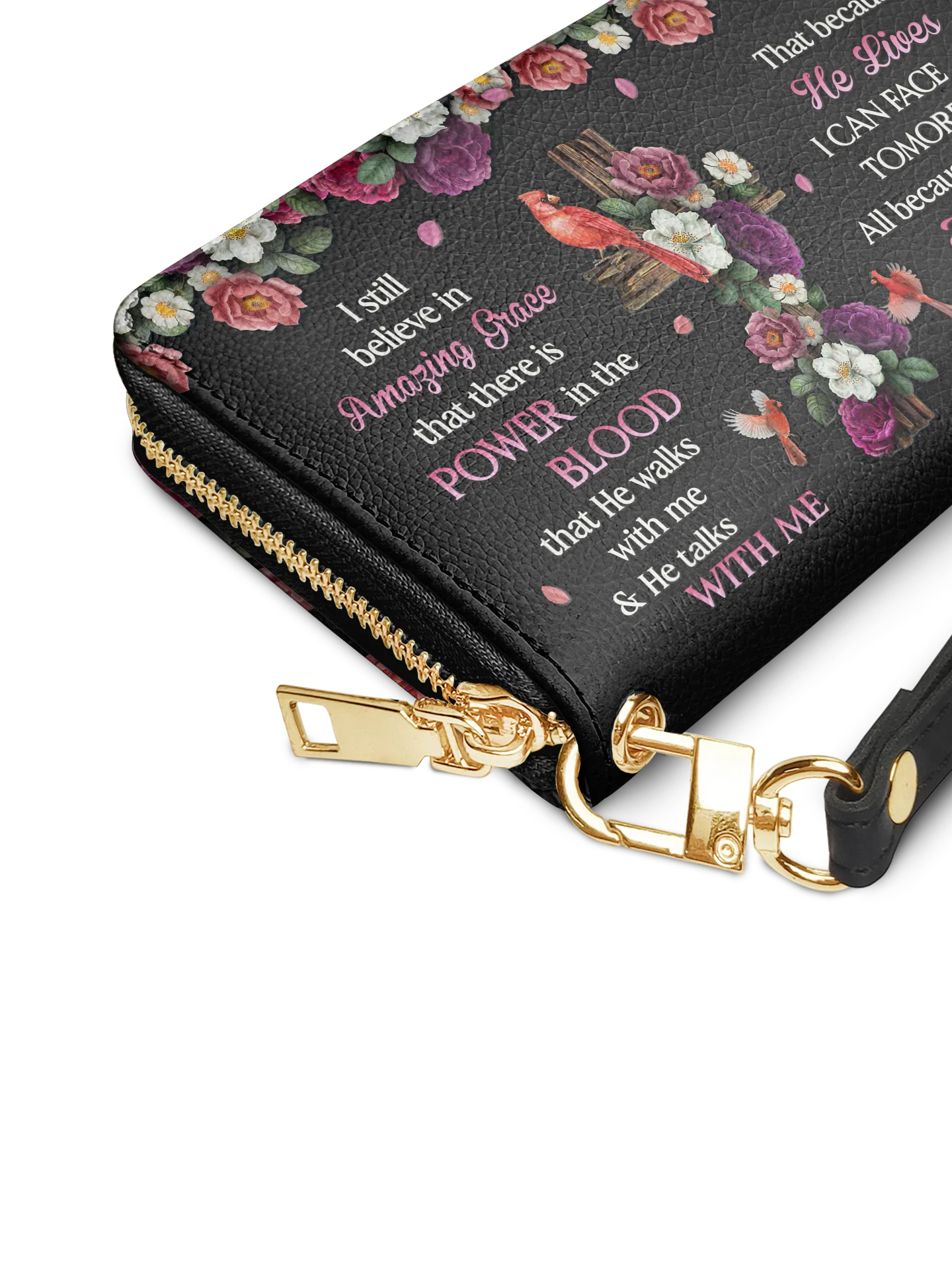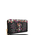 This wallet is spacious and stylish, holding beauty essentials, cash, cards, and a phone with ease.