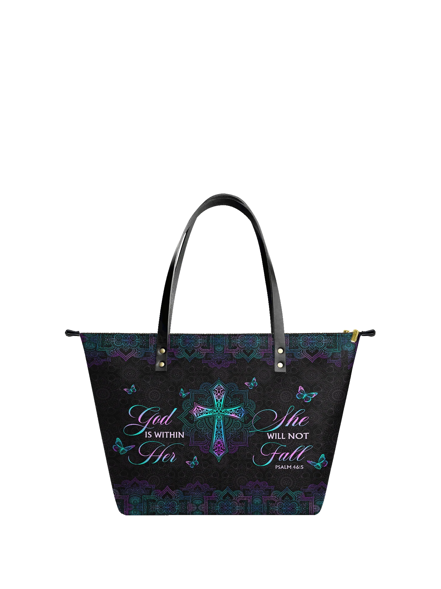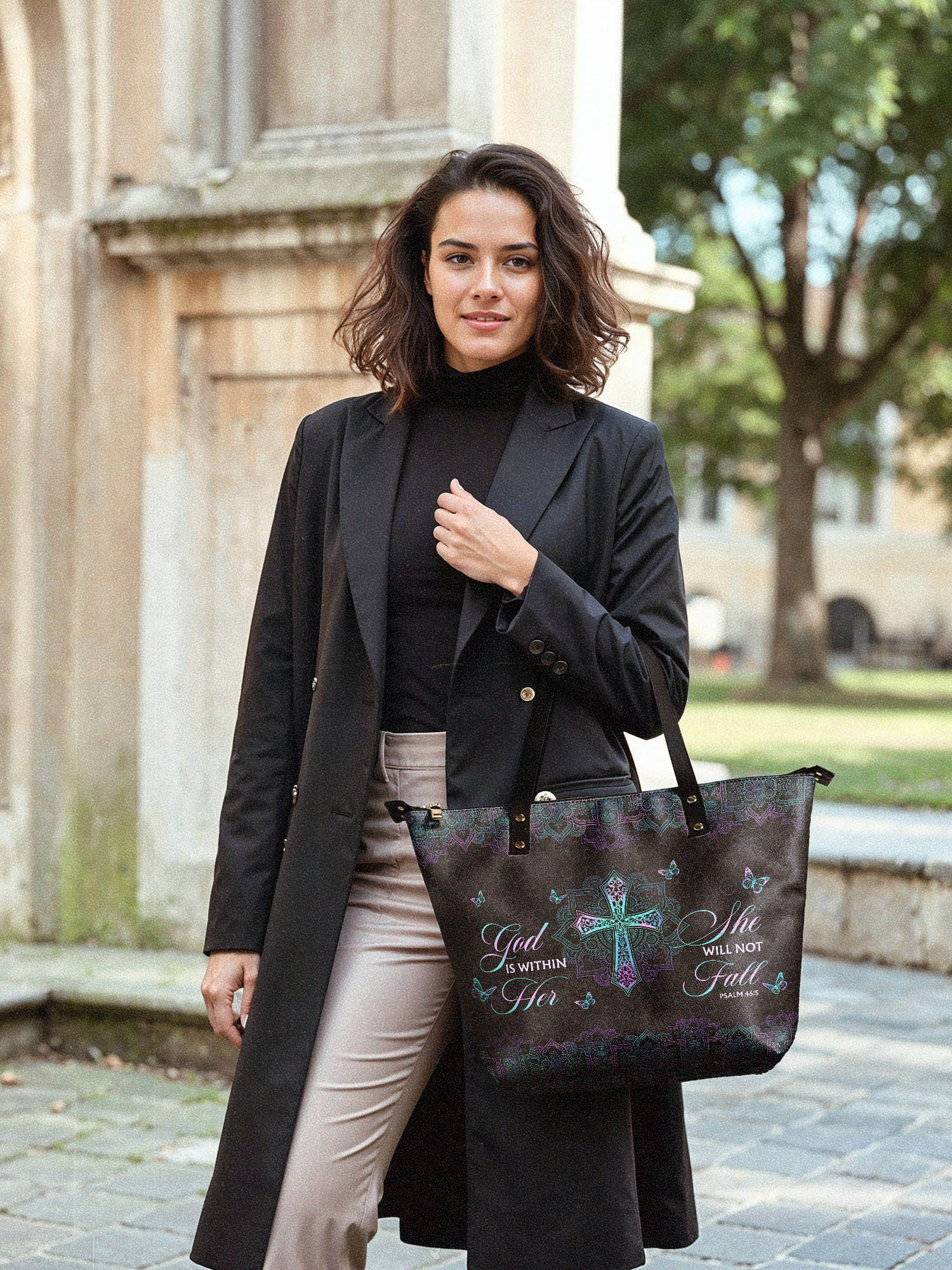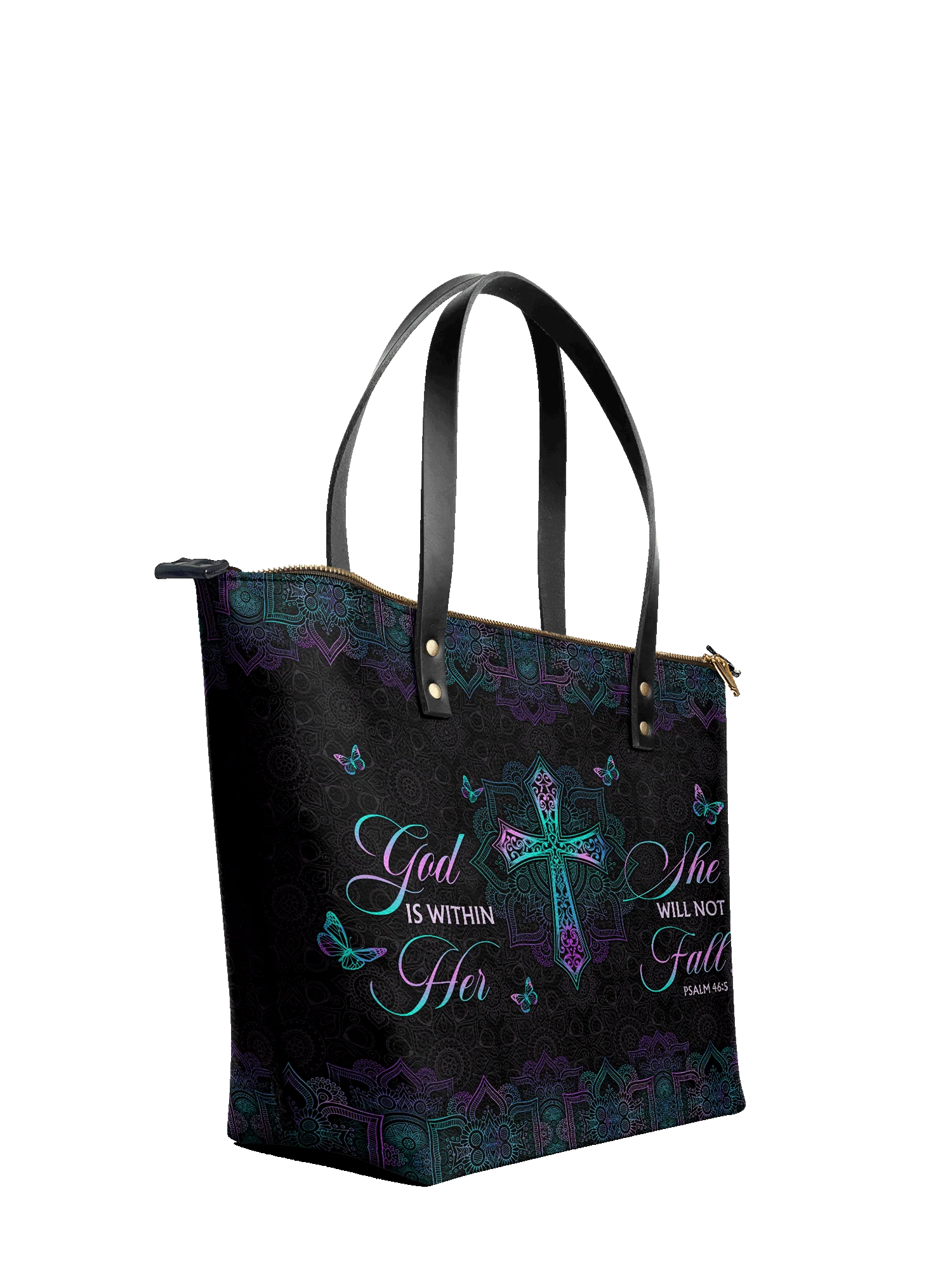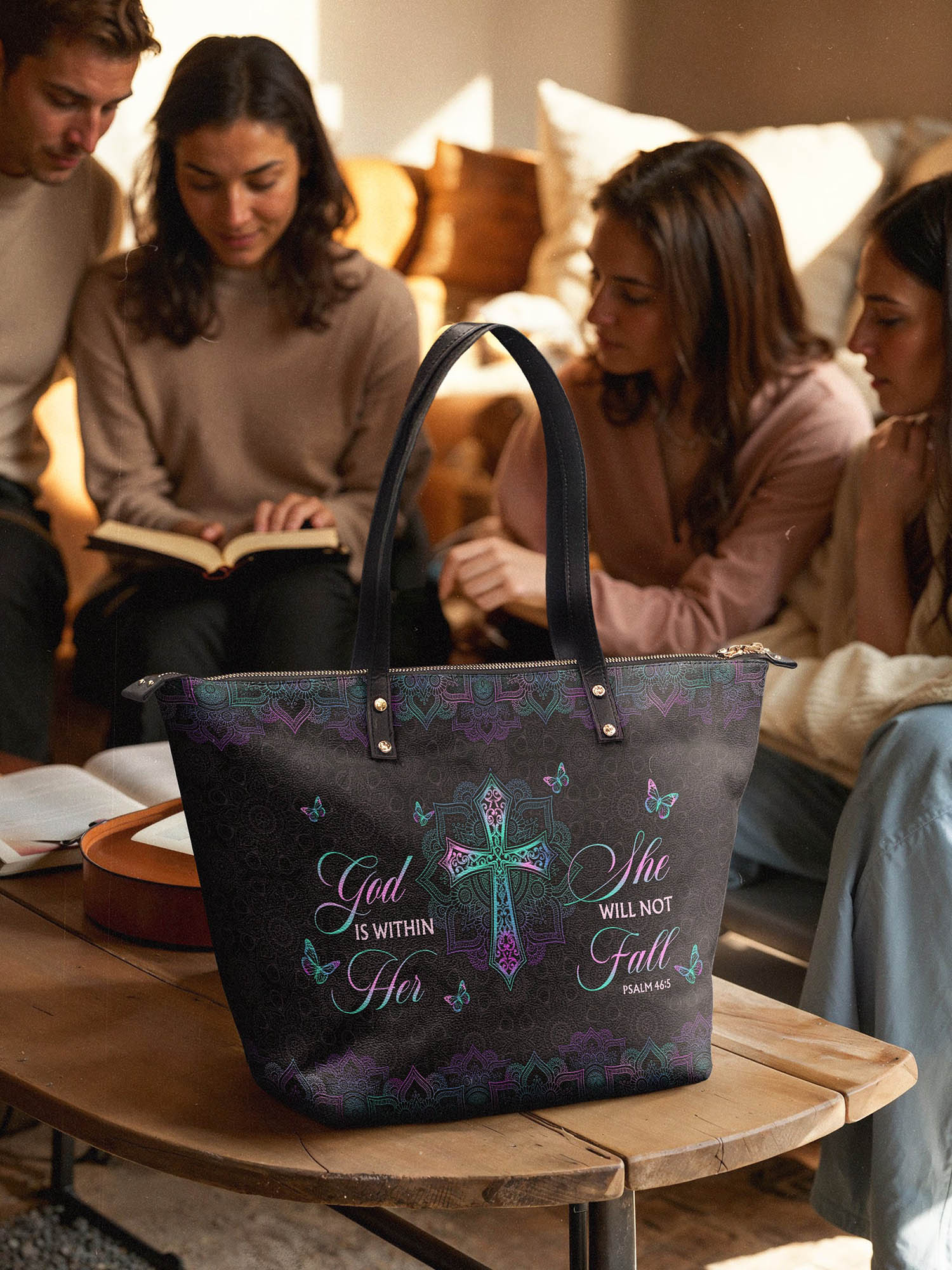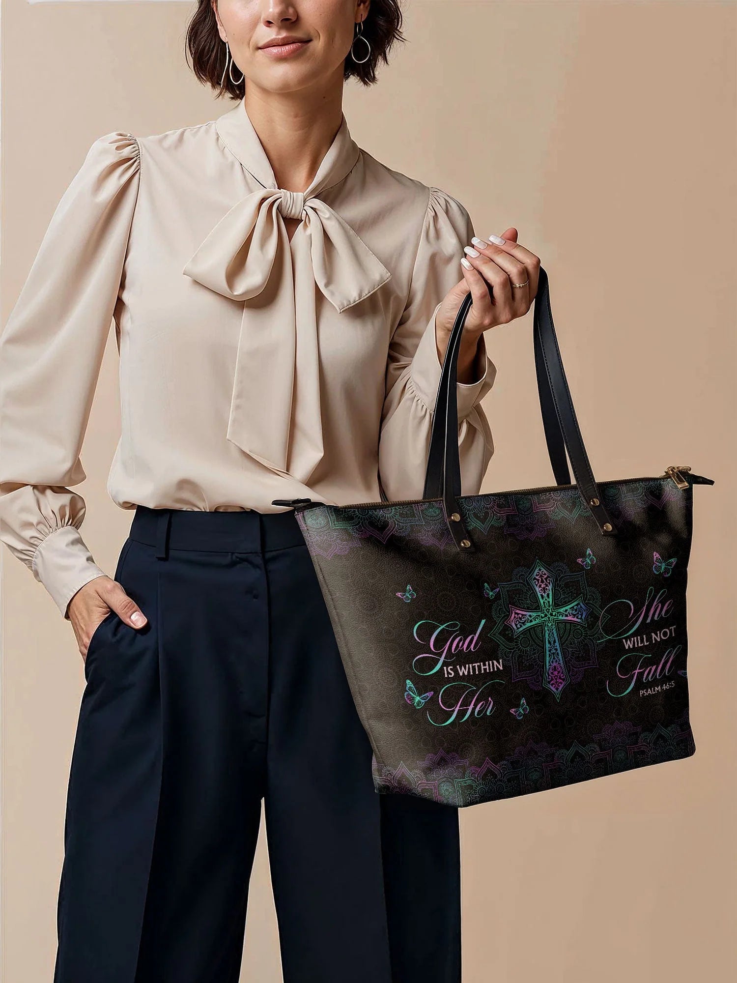 "Unshaken" - Psalm 46:5 Leather Tote Bag